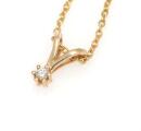 Diamantvedhæng af 14 kt. guld prydet med brillantslebet diamant på ca. 0.03 ct. Farve: Wesselton (H). Klarhed: VVS. Forgyldt Jane König halskæde af sterlingsølv medfølger. L. 42 cm. (2)
