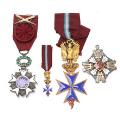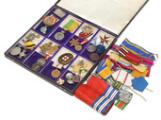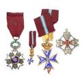 Samling af medailler, inkl. Litauen, Storhertug Gediminas' Orden, 3. klasse kommandør (49 mm x 56,5 mm); Belgien – Kroneordenen, officerskors med sværd.