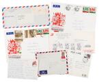 China/Taiwan. Very interesting selection of entires incl. China German Colonies sent to Denmark, entires sent from Denmark to China incl. PASSED BY CENSOR 56 SINGAPORE, cover from EBELTOFT 29.9.20 sent to TIENTSIN, very uprated stationary card from PEKING to Germany, scarce REGISTERED cover from TIENTSIN sent to Denmark with transit marks from NEW YORK, USA and other chinese transit mark and many other entires. [ ✉ ]