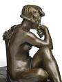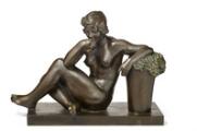 Reclining woman with grapes. Signed Helen Schou. Bronze. L. 65 cm. W. 65 cm. D. 26 cm.