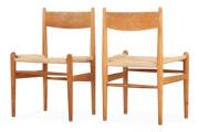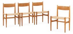 Sæt på fire stole af eg. Sæde med flettet papirgarn. Model CH 36. Formgivet 1962. Udført hos Carl Hansen & Søn. (4)