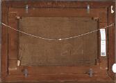 Lærredet buler en smule i nederste højre hjørne. Minimale perforeringer. Retoucheringer.