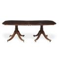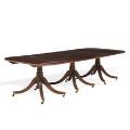 An English three pillar table of solid mahogany with profiled pillars on a four-legged base on brass castors wheel. Three accompanying extension leaves in two different sizes. C. 1900. H. 75 cm. L. 308 cm. L. 408/508 cm. W. 120 cm. (4)