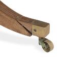 Wear. Marks and scratches. Faded. Missing brass horse shoes. One leg is broken.