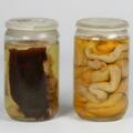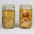“Hesteofringen”, 1970. 2 syltetøjsglas med præparater af hesten “Røde Fane” i formaldehyd. H. 22. Dia. 13. (2)