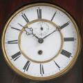 Regulator vægur i kasse af palisander. Hvidemajeret skive med romertal. Antageligt Tyskland, 19. årh.s slutning. H. 102. B. 27. D. 16.