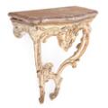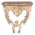Tysk rokoko konsol af bemalet og delvist forgyldt træ. Plade af rødbroget marmor. Ca. 1760. H. 88. B. 65. D. 37.