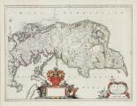“Iutia Olim Cimbrica Chersoneus”. Map of Jutland, Denmark. 1662. Hancoloured engraving. Visible size 48.5×63 cm.