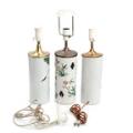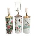 Tre kinesiske hat stands af porcelæn, dekoreret i farver med kvinder i have, blomster og fugle, den ene med gennembrydninger. Monteret som bordlamper. 20. årh. H. ekskl. montering 28. (3)