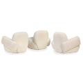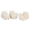 “Havana”. Tre loungestole, heraf to hver med et armlæn samt en med to armlæn. Betrukket med lyst Curl stof. Fremstillet hos Eilersen. (3)