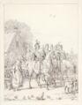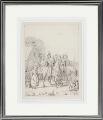 Horse riders recieved by a peasant woman. Unsigned. Pencil and drawing ink on paper mounted on paper. Sheet size 29×22.5 cm.