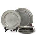 A collection of 19th century pewter parts, comprising seven dished and three plates, partlt stamped. Diam. 19.5–35.5 cm. (10)