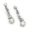 Et par Belle Epoque diamantørestikker af platin hver prydet med talrige old-cut diamanter på i alt ca. 3.40 ct. Farve: Wesselton-Top Crystal (H-I). Klarhed: SI-P1. L. ca. 3 cm. England, ca. 1910. (2)