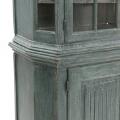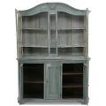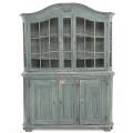 A large blue painted vitrine cupboard with arched top above glass doors behind which shelves, the lower part with three paneled doors. Slesvig-Holstein, 18th century. H. 235 cm. W. 177 cm. D. 56 cm.