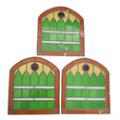 Tre blyindfattede ruder af rødt, grønt og ravfarvet glas. Ca. 1900. 48×42 cm. (3)