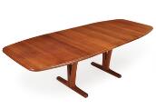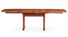 A solid teak dining table with extension and three extra leaves. Manufactured by J.L. Møllers Møbelfabrik. 1980s. H. 73. L. 145/246. W. 95 cm. (4)
