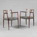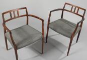 Et par armstole af Rio-palisander, sæder med grå uld. Model 64. Formgivet 1966. Udført hos J. L. Møller, Højbjerg. 1960erne. (2)