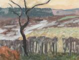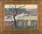 Landskab fra Virum en aften i marts. Usign. Olie på lærred. 34×44.