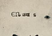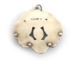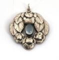 Vedhæng af sølv prydet med cabochonslebet månesten. Vægt ca. 22 g. B. 5,2 cm. L. inkl. øsken 6,4 cm.