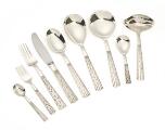 Bestående af: 11 middagsknive L. 21., 10 middagsskeer L. 19,3., 10 middagsgafler L. 18,8., 12 kaffeskeer L. 11,2., 12 kagegafler L. 14,2., 1 sauceske L. 16,6., 1 serveringsske med cirkulært laf L. 20., 1 serveringsske L. 20,5., 1 sukkerske L. 12,5.