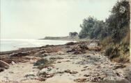 Beach view from Moesgaard in sunlight. Signed and dated J. La Cour 1884. Oil on canvas. 44×68.5 cm.
