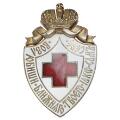 Russia, Red Cross badge by Eduard, gilt silver and enamel, kokoshnik and makers mark on rev.