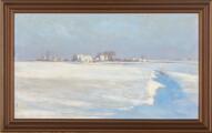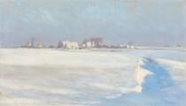 Winter landscape with view to houses. Signed Cilius A, 1896. Oil on canvas. 31×54 cm.