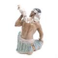 “Mand med kakadue”. Figur af porcelæn, dekoreret i underglasurfarver. Dahl-Jensen. Nr. 1305. H. 25.