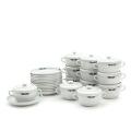 “Gemina”. 12 porcelain soup cups with lids, decorated with transparent glaze and blue glazed motifs. Royal Copenhagen. (12)