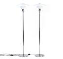 “PH-3½/2½”. Et par standerlamper af forkromet stål med skærme af flerlags opalglas. Udført og mærket hos Louis Poulsen. H. 130. (2)