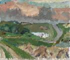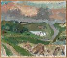 Landscape with a Farm, 1965. Unsigned; titled on the stretcher. Oil on canvas. 34×40 cm.