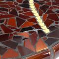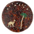 Circular coffee table with club legs and bars of stained beech. Top of mosaic. H. 59. cm. Diam. 63.