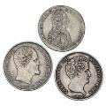Christian VI, 24 skilling 1731, H 6B, kval. 1, Christian VIII, 1 rigsbankdaler 1847 VS, kval. 1+, og Frederik VII, 1 rigsdaler 1855 FF, kval. 1+, i alt 3 stk.