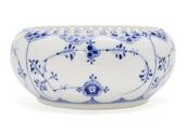 “Musselmalet Helblonde” skål af porcelæn, dekoreret i underglasur blå. 1183. Royal Copenhagen. H. 6.5 cm. Diam. 14 cm.