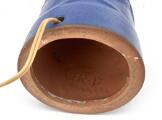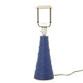 Bordlampe af hårdbrændt lertøj modelleret med mønster i relief. Dekoreret med blå glasur. Sign. CHR-P, Danmark. H. ekskl. fatning 27. H. inkl. skærmeholder 47.