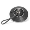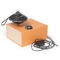 “Horizon Light Up Speaker” af sort monogram præget læder med poleret og mat rustfrit stål med PVD-belægning i gunmetal-farve, samt aftagelig kort hank af sort læder. Oplader medføgler. Ca. 14×18 cm. (2)