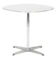 “Supercirkulær”. Cafébord med fod af aluminium og stamme af stål. Top af hvid laminat. Model A 602. Udført hos Fritz Hansen. H. 71. Diam. 75.