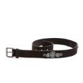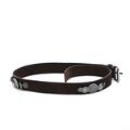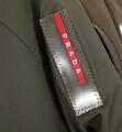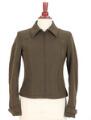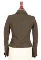 Kort jakke af armygrøn polyamidblanding. L. midt bag 52 cm. Italiensk str. 40. Samt bælte af brunt ruskind med møntdetaljer. L. 68–78 cm. (2)
