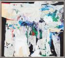 “Set fra vinduet i Via Garibaldi I”, 1990. Sign. Rodian-90 med titel og datering på bagsiden. Akryl på lærred. 80×90 cm.