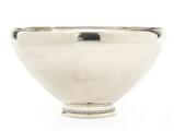 A circular sterling silver bowl with hemmered surface, beaded foot rim. Georg Jensen 1945–1977. Design no. 461 A. Weight 511 g. H. 10.5 cm. Diam. 19 cm.