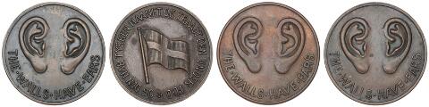 Medalje / Propagandamønert. 2. Verdenskrig. Gaa Stille med Dørene (3), Kaj Munk og alle de andre, i al t 4 stk. i kobber