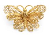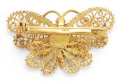 Filigran broche af 18 kt. guld i form af sommerfugl. Vægt ca. 10,5 g. Ca. 43×26 mm.
