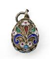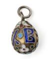 A Russian silver-gilt miniature Easter egg pendant, decorated with cloisonné enamel and letter XB. No maker's mark, 84 standard. Early 20th century. H. incl. eyelet 2 cm.