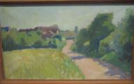 Landskab med by i baggrunden. Maleri. Sign. A. Bredsdorff. 41×71.