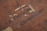 A patinated natural leather trunk. Marked A. Fritsche, Copenhagen. Manufactured by John Pound, London. Circa 1900–1910. H. 47. L. 70. W. 50 cm.