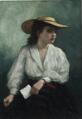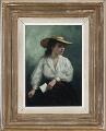 En ung kvinde med et brev i hånden. Sign. H. Helme. Olie på lærred. 35×25.
