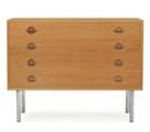 “Ry 250”. Oak chest of drawers, front with four drawers with steel handles, round steel legs. Manufactured by Ry Møbler. 1960's. H. 77. L. 100. D. 47 cm.