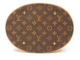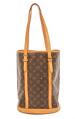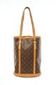 “Bucket GM” taske af brunt monogram kanvas med brune læderbesætninger, gyldne beslag, to justerbare hanke, et åbent rum med to indvendige lommer hvoraf en har lynlås, samt beige læderfor. H. 32 x B. 27 x D. 20 cm. 1999.