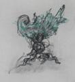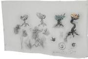 A large sketch of centrepieces, mussels and a glass. Ink and coloured crayons on thick, grey paper. With dedication. Signed and dated 11/11/92. Unique. H. 90–102 cm. W. approx. 150 cm.