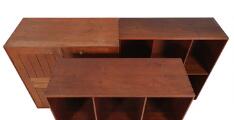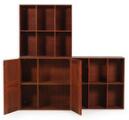 Skab og to bogkasser af massiv teak. Udført og mærket hos Rud. Rasmussen Snedkerier. Skab. H./B. 76. D. 36 cm. Bogkasser. H./B. 76. D. 27.5 cm. (3)